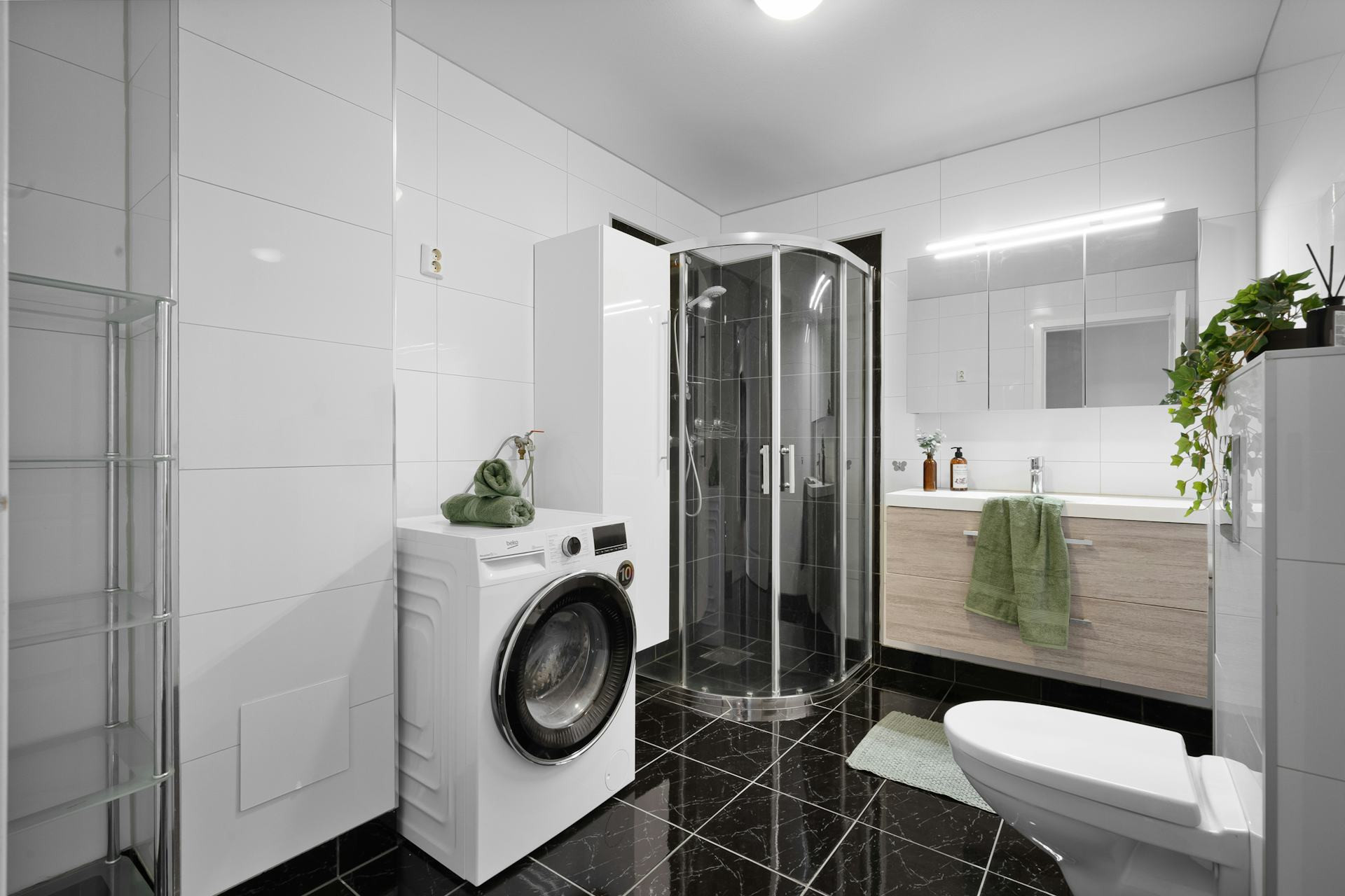 - Kombineret vaske-tørremaskine – ideel til små badeværelser eller køkkener, hvor der ikke er plads til to separate maskiner. Du kan vaske og tørre i samme tromle uden at flytte tøjet.